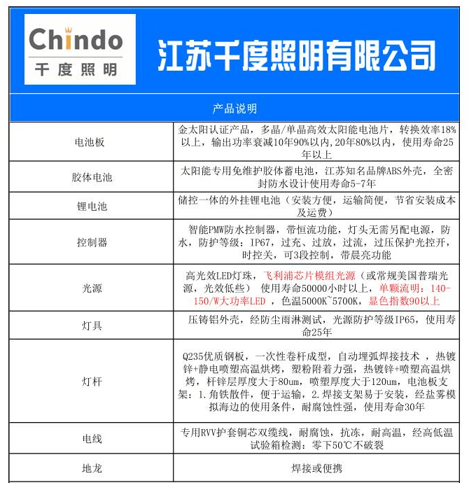 常規(guī)鋰電池太陽能路燈價格表